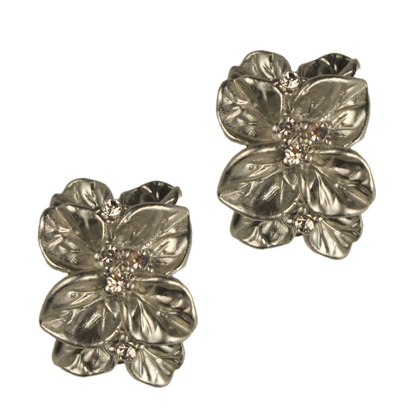 Rosa Clip Earrings (Rhodium)