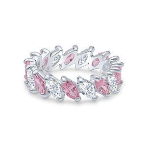 The Demeter full-eternity ring features alternating white and pink marquise cubic zirconia stones set in rhodium-plated sterling silver.