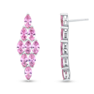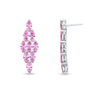The Demi drop earrings feature all-pink 4x8mm marquise cubic zirconia stones. These earrings are set in rhodium-plated sterling silver with a post and butterfly fitting.