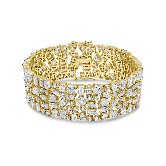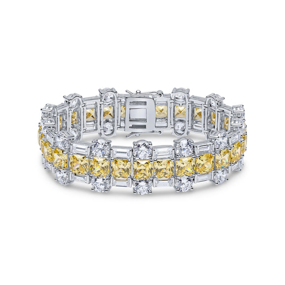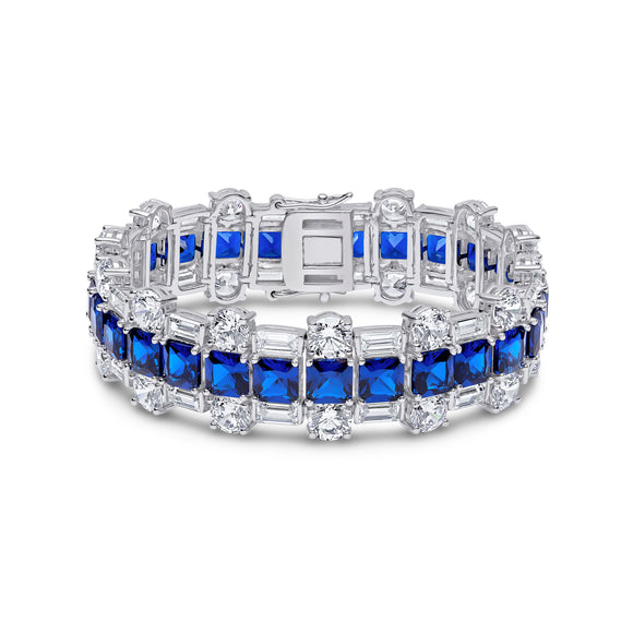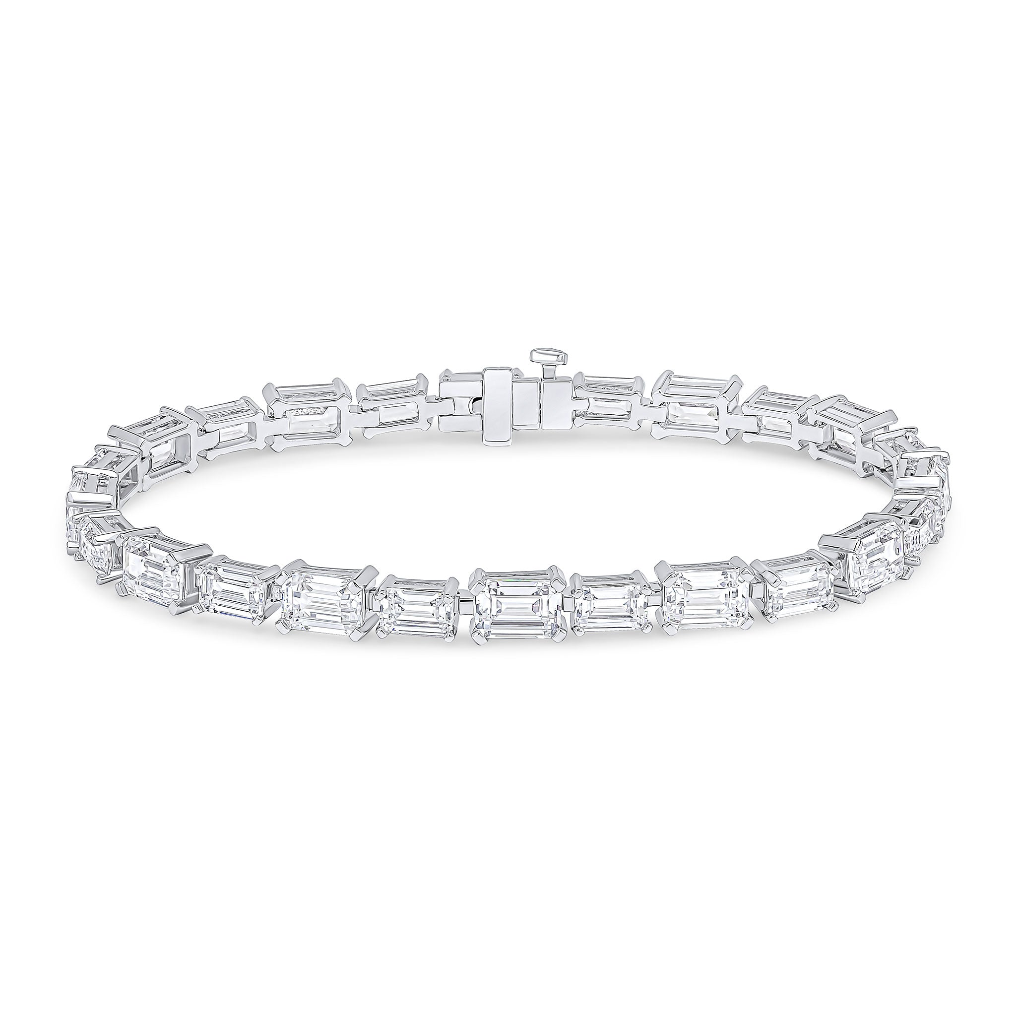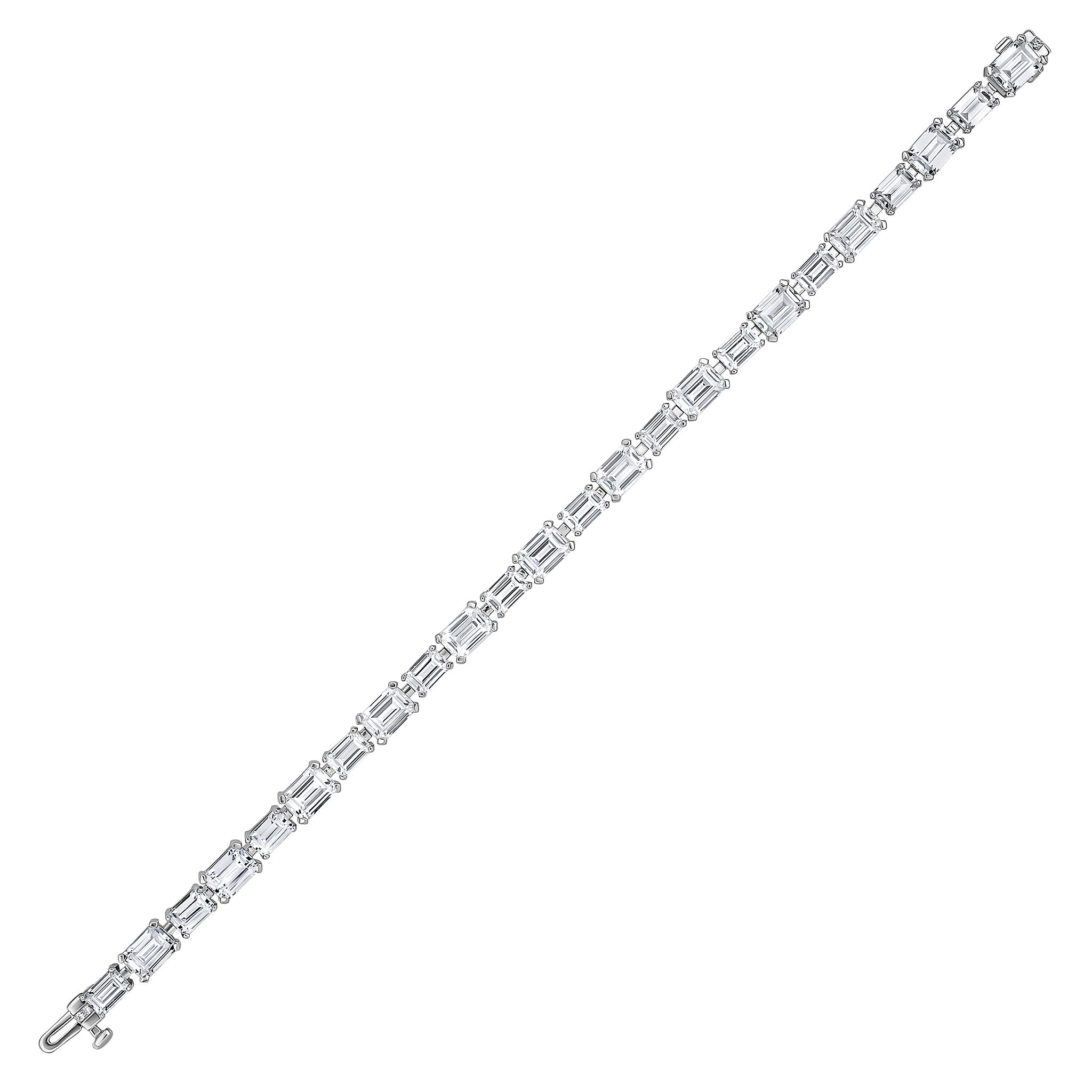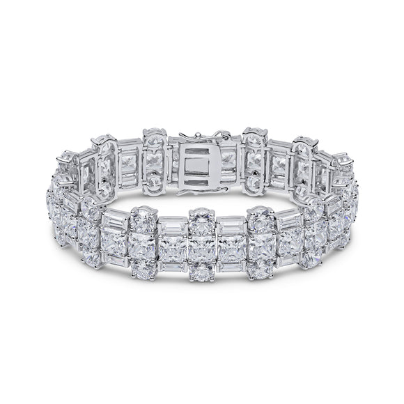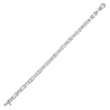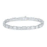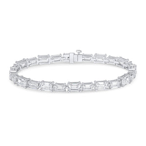 The Savoy bracelet features all white alternating 6x4mm and 7x5mm emerald cut cubic zirconia stones set in rhodium-plated sterling silver. This bracelet has a hidden safety clasp and is available in two lengths.