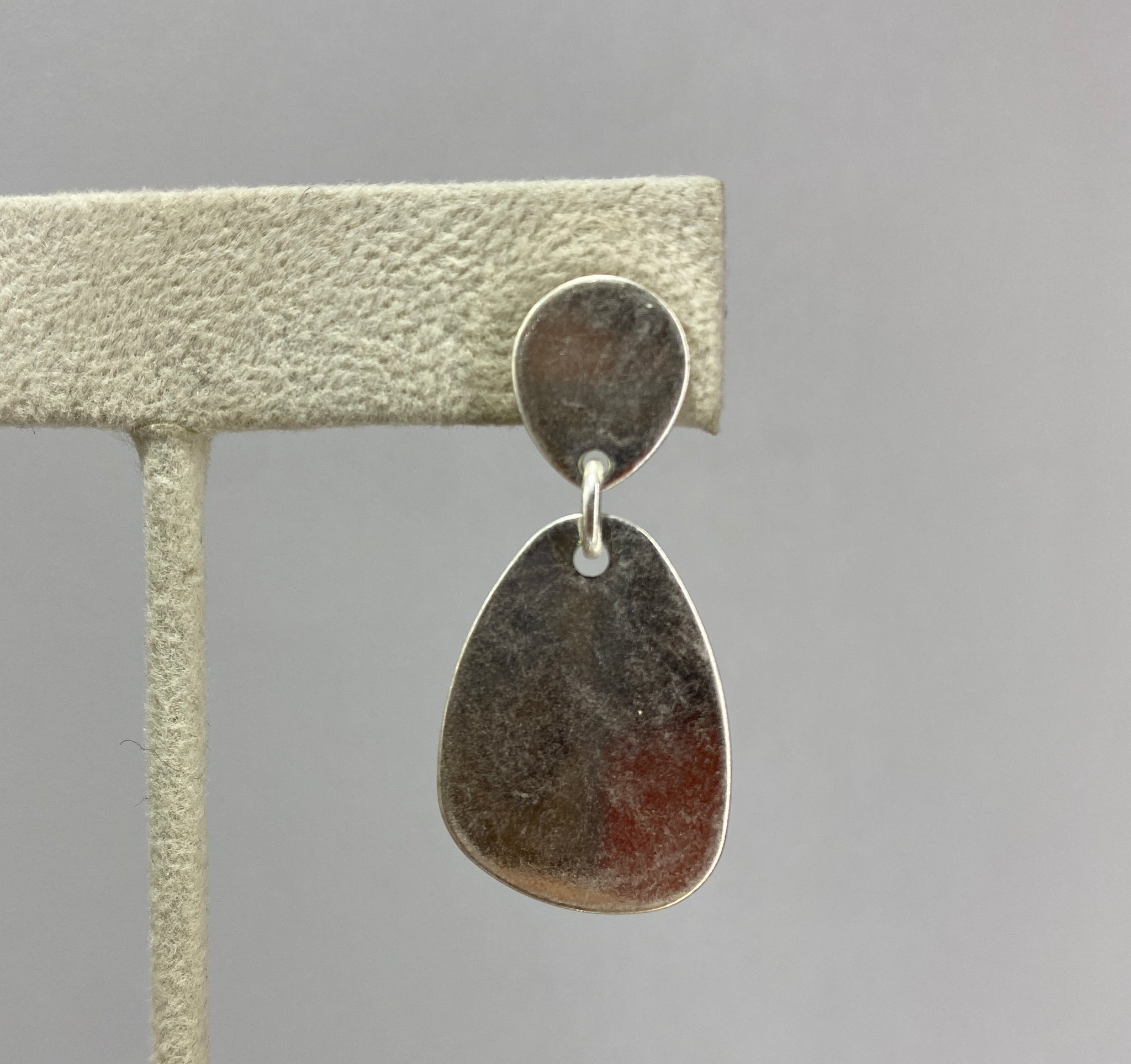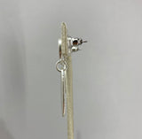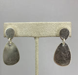 The Doreen earrings feature two rustic-finish flat discs made of rhodium-plated base metal with a post and disc-back fastening.