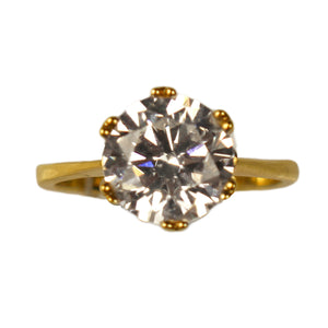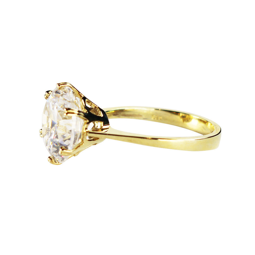 The Veora solitaire ring features a 11mm white round brilliant cubic zirconia stone set in a classic 6-claw gold plated sterling silver setting.