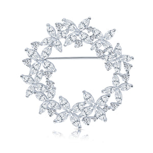 The Margarita brooch features all-white scattered round cubic zirconia stones clustered with marquise stone flowers. This brooch is set on rhodium-plated sterling silver and has a pendant loop on the back to which you can attach a chain to make a pendant.