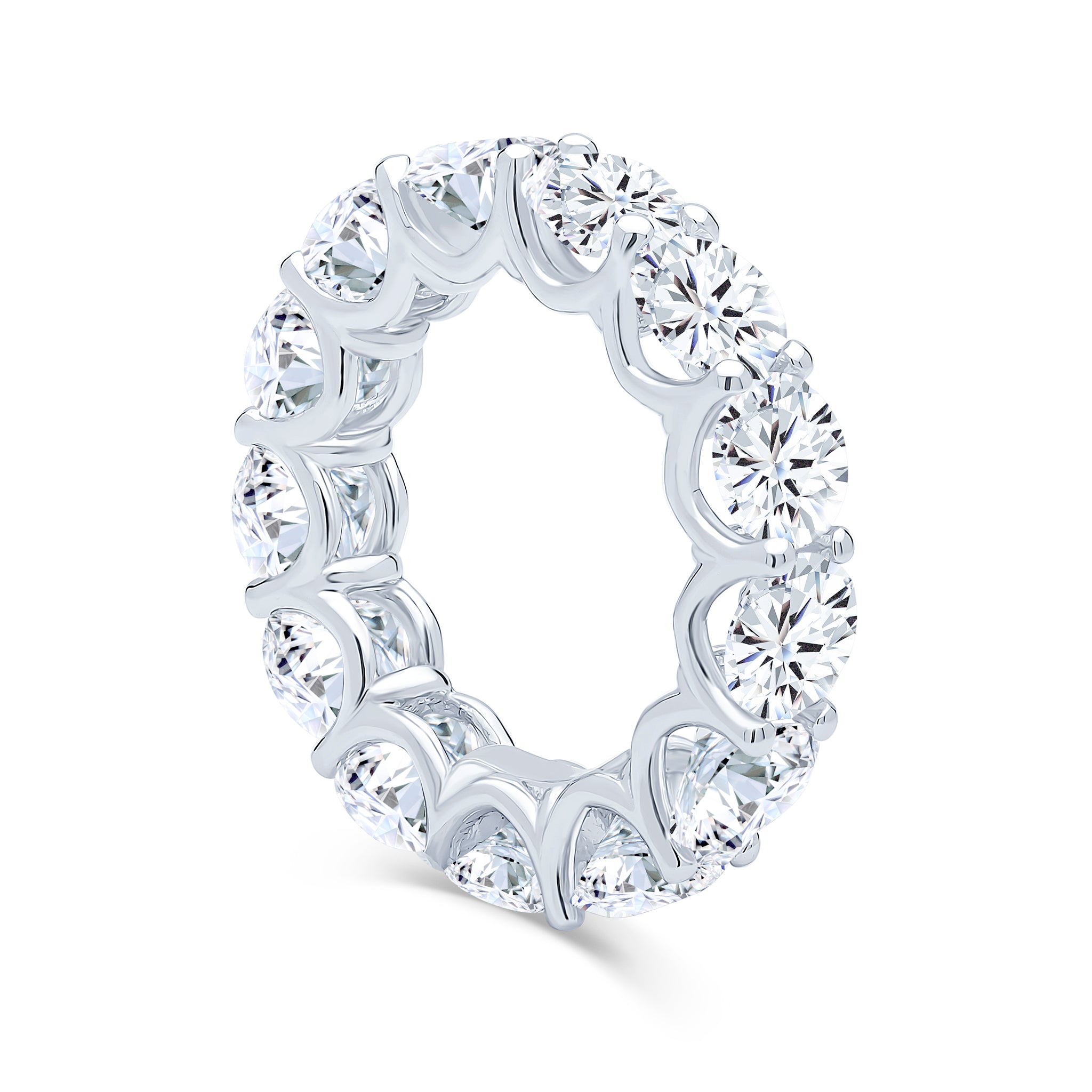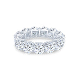 The Heather full-eternity ring features claw-set 5.5mm all white round cubic zirconia stones. This ring is set in rhodium plated sterling silver.