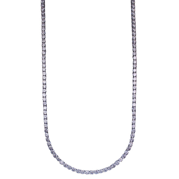 The Marisol long necklace features claw-set 5mm round white cubic zirconia stones, set in rhodium-plated base metal.