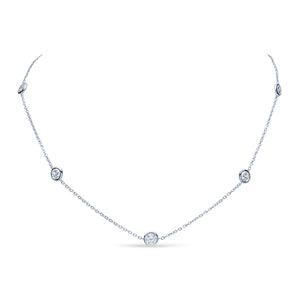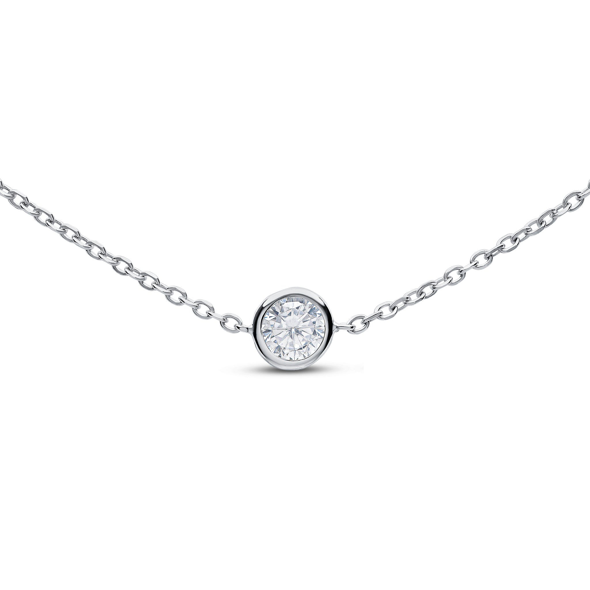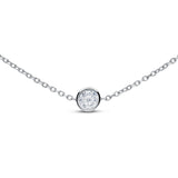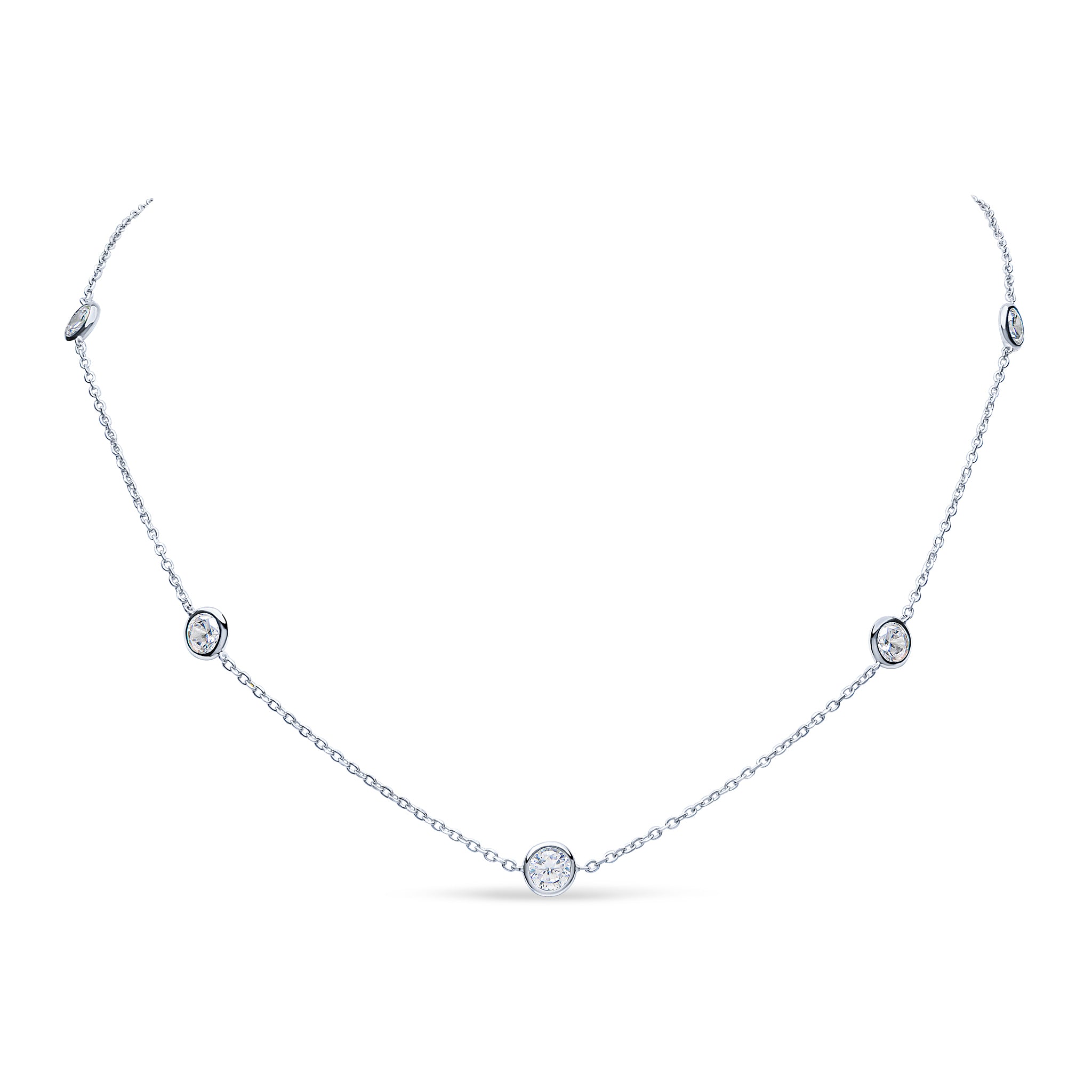 The Antoinette necklace features 7mm rub-over all-white cubic zirconia stones on a rhodium-plated sterling silver chain with a lobster clasp.
