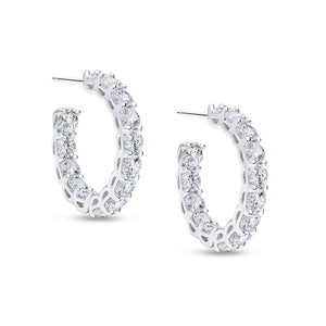 The Kenny hoop earrings feature all-white 3.5mm round cubic zirconia stones, set on rhodium-plated sterling silver with a post and butterfly fitting.