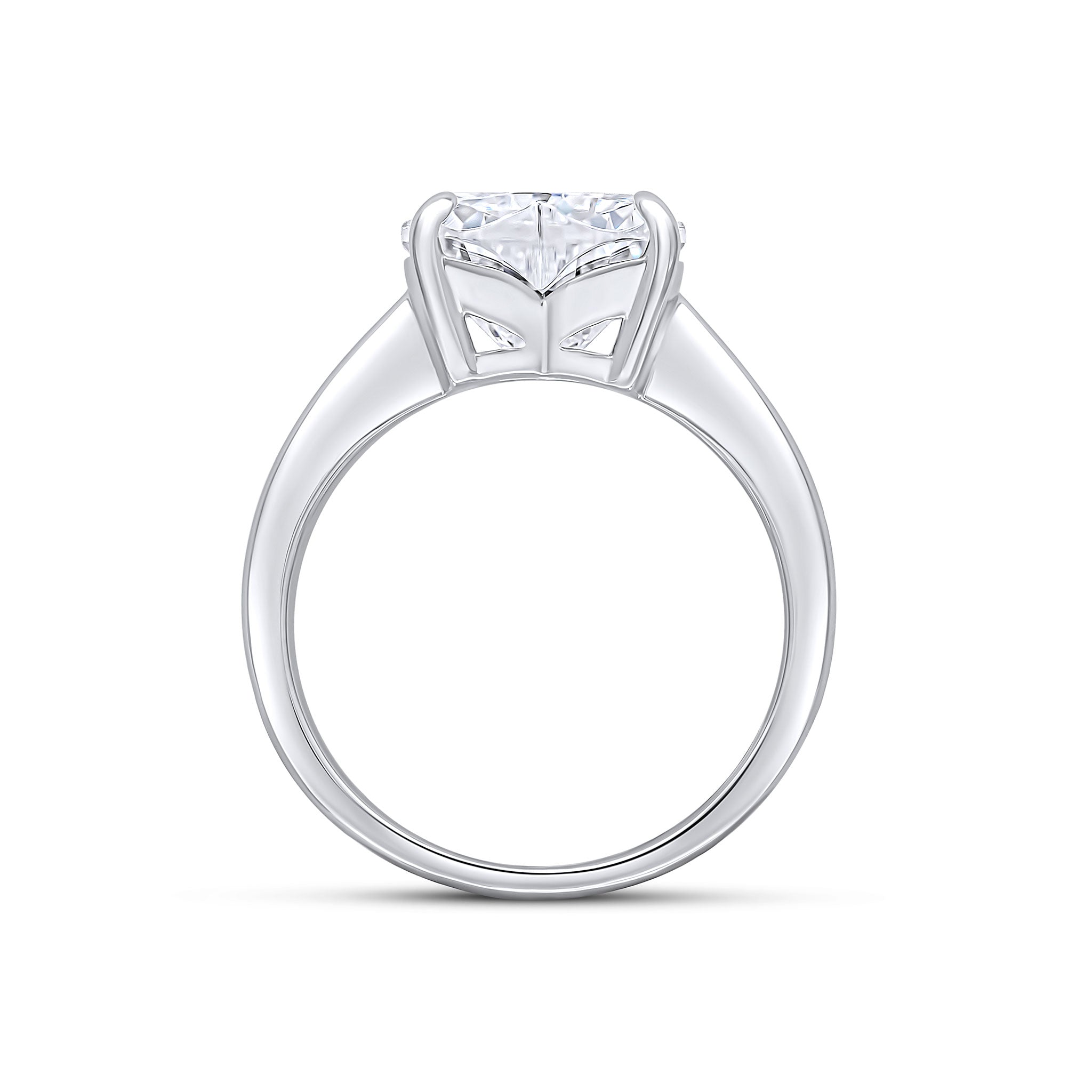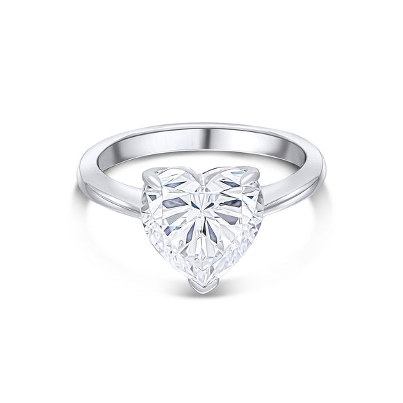 This Honey solitaire ring features a 10x10mm white heart-shaped cubic zirconia stone with a polished rhodium-plated sterling silver band.