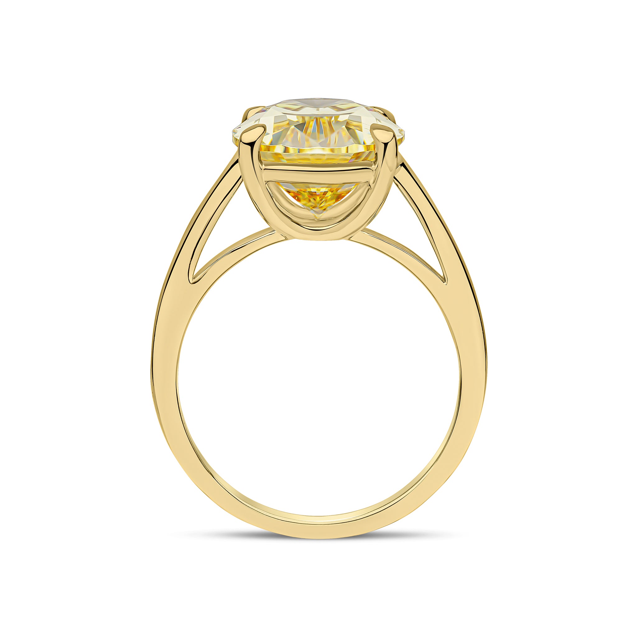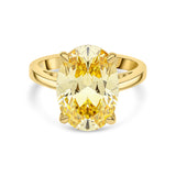 The Rachel ring features a 10x14mm canary oval-shaped cubic zirconia solitaire set in gold-plated sterling silver with a polished band.