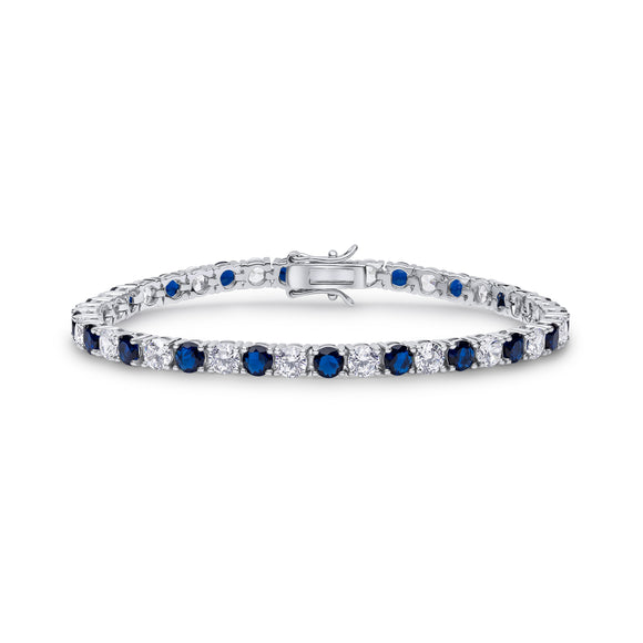 The Martina tennis bracelet features 3mm (0.10ct) all-white cubic zirconia stones, set in rhodium-plated sterling silver. This bracelet has a double figure-8 safety clasp.