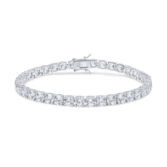 The Martina tennis bracelet features alternating 3mm round ruby and white cubic zirconia stones, set in rhodium-plated sterling silver.