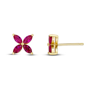 The Flo earrings feature four marquise-cut ruby cubic zirconia stones set in gold-plated sterling silver with a post and butterfly fitting.