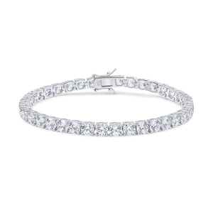 The Alexis bracelet features 5mm (0.50ct) all-white round brilliant cubic zirconia stones, set in rhodium-plated sterling silver with a double figure-8 safety clasp.