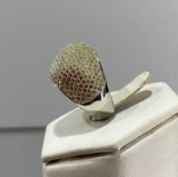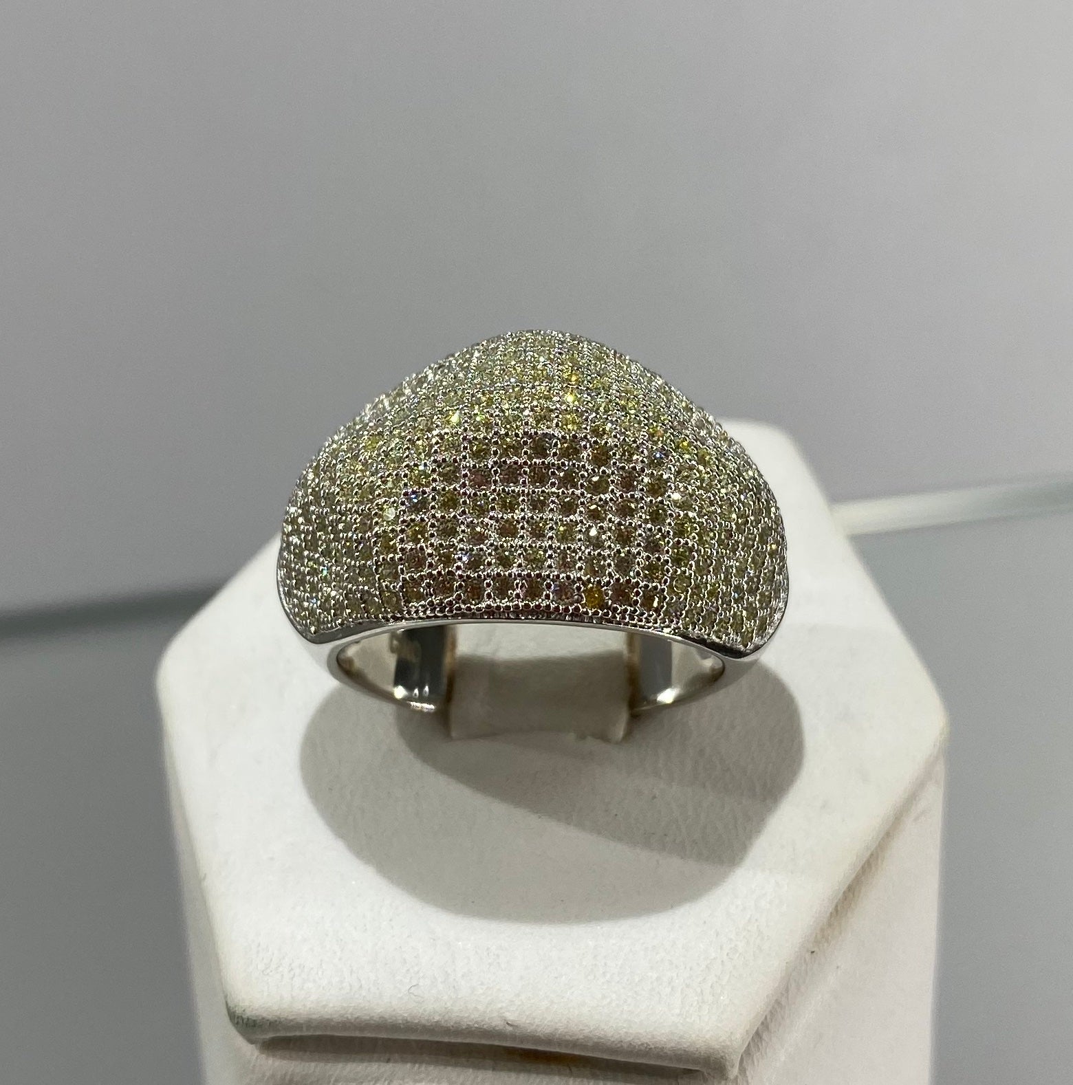 The Amanda ring features a pebble-like design of micro-pavé pale canary cubic zirconia stones set in rhodium plated sterling silver.