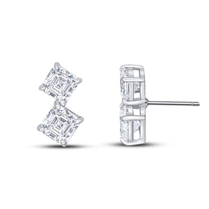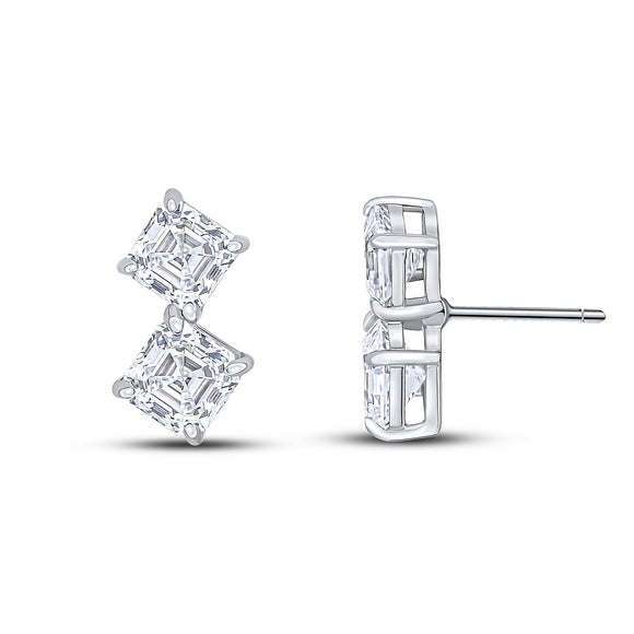 The double Annalise earrings feature two off-set 6-6.5mm white asscher-cut cubic zirconia stones set in rhodium plated sterling silver with a centre post and butterfly fitting.