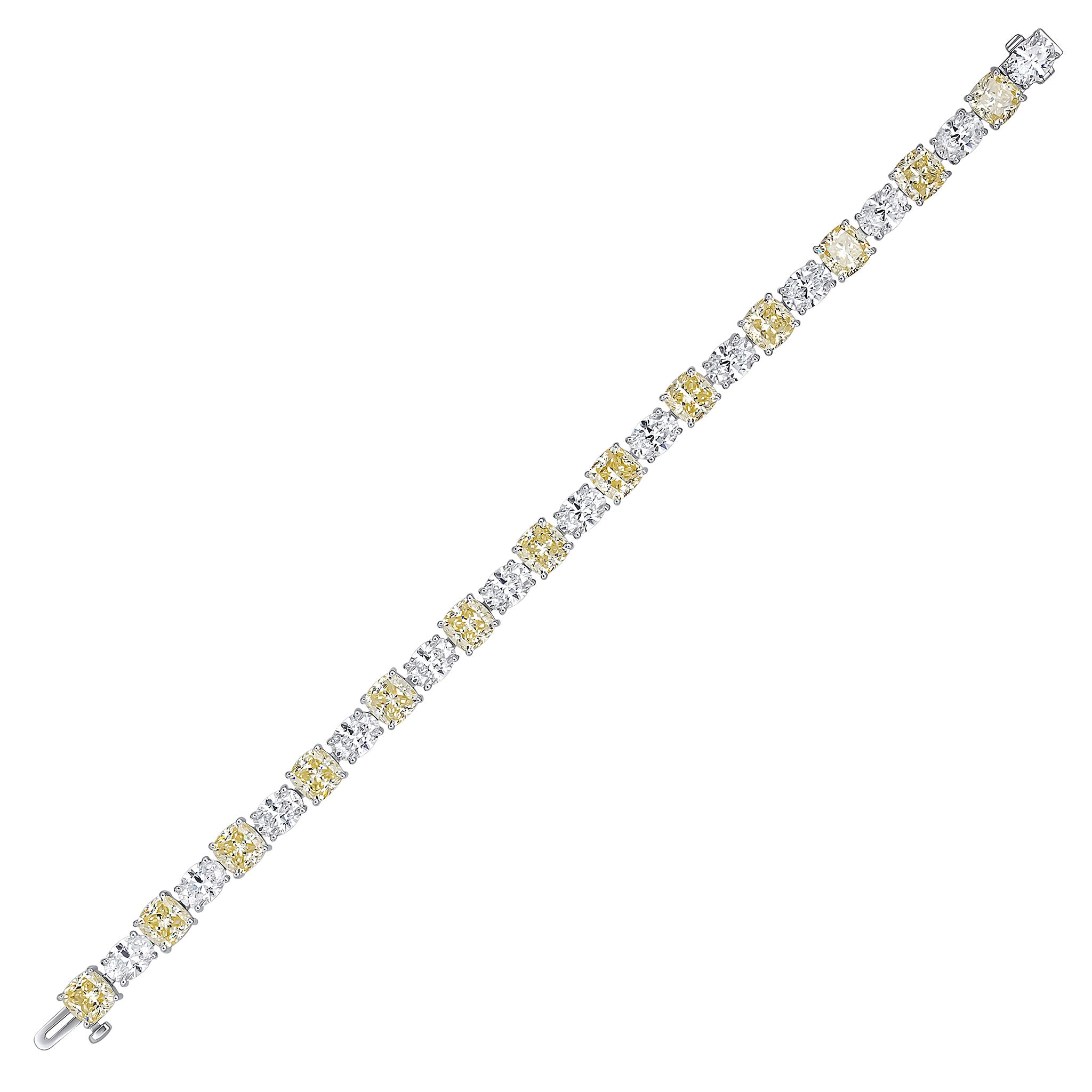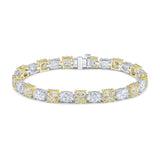 The Annie bracelet features alternating canary 6x6mm cushion-cut cubic zirconia stones and white 7x5mm oval stones, set in two-tone plated sterling silver. This bracelet has a hidden safety clasp which clicks into place underneath the clasp.