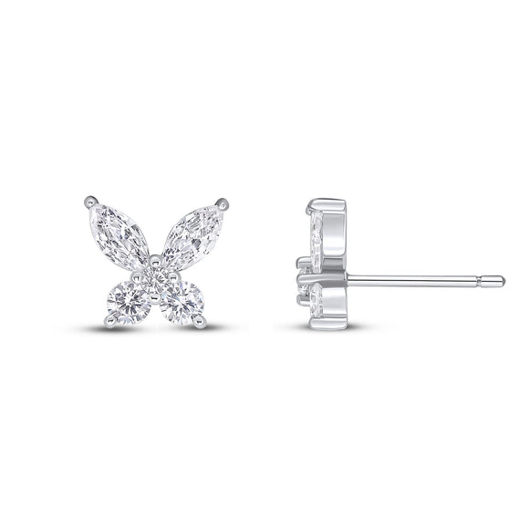 The Butterfly earrings feature a floating butterfly design of all-white round and marquise cubic zirconia stones, set on rhodium-plated sterling silver with a post and butterfly fitting.