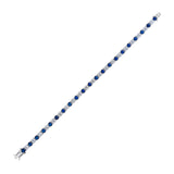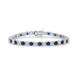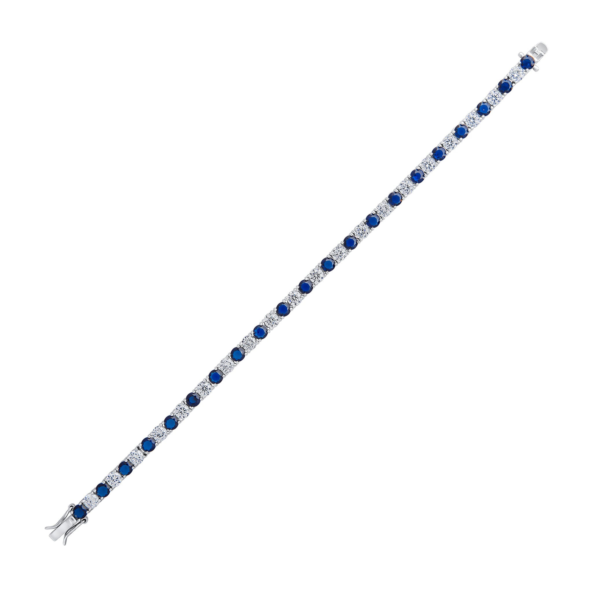 The Cressida bracelet features alternating 4mm round brilliant sapphire and white cubic zirconia stones, set in rhodium-plated sterling silver setting.