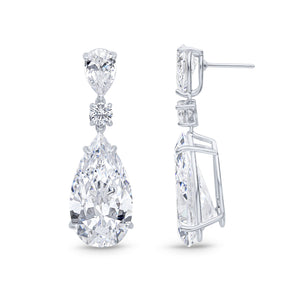 The Gabriella drop earrings feature all-white pear and round cubic zirconia stones with a 14x26mm drop. These earrings are set in rhodium-plated sterling silver with a post and butterfly fitting.