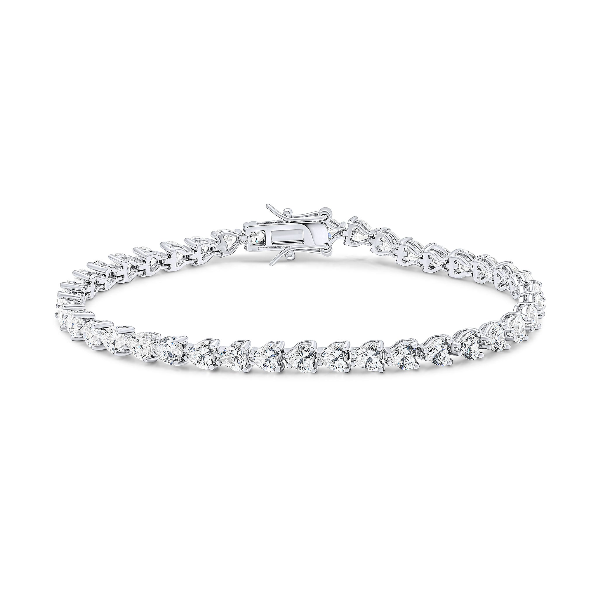 The Honey bracelet features all-white 4mm heart-shaped cubic zirconia stones, set in rhodium plated sterling silver with a double figure-8 safety clasp.