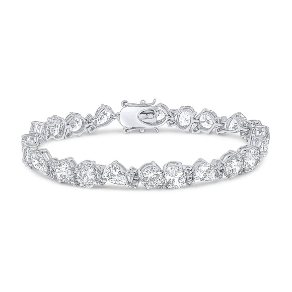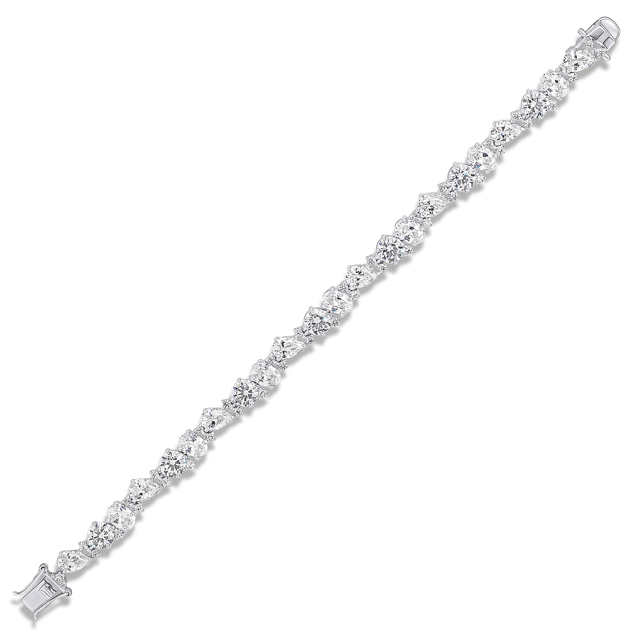 The Larsa bracelet features all-white slanting oval, round and pear cubic zirconia stones set on rhodium-plated sterling silver. This bracelet measures approximately 7" in length.