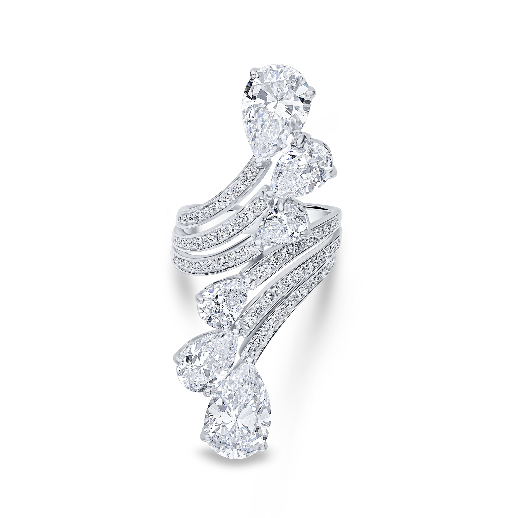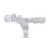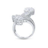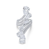 The Minnie cocktail ring features all-white pavé round and pear-shaped cubic zirconia stones with filigree detail on the setting. This ring is set on rhodium-plated sterling silver.