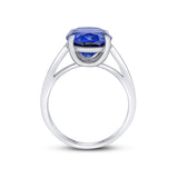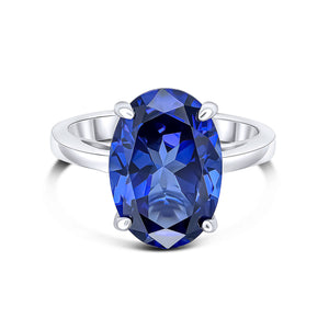 The Rachel ring features a 10x14mm sapphire oval-shaped white cubic zirconia solitaire set in rhodium-plated sterling silver with a polished band.