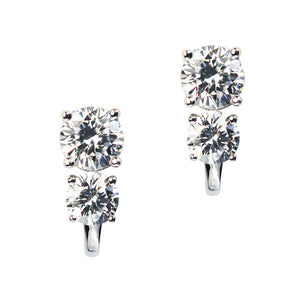 The Yvonne clip-on earrings feature all-white static round white cubic zirconia stones set in rhodium-plated sterling silver.