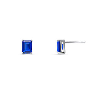 The Savoy stud earrings feature 7x5mm sapphire-colour baguette cubic zirconia stones. These earrings are set in rhodium plated sterling silver with a post and butterfly fitting.