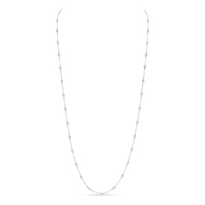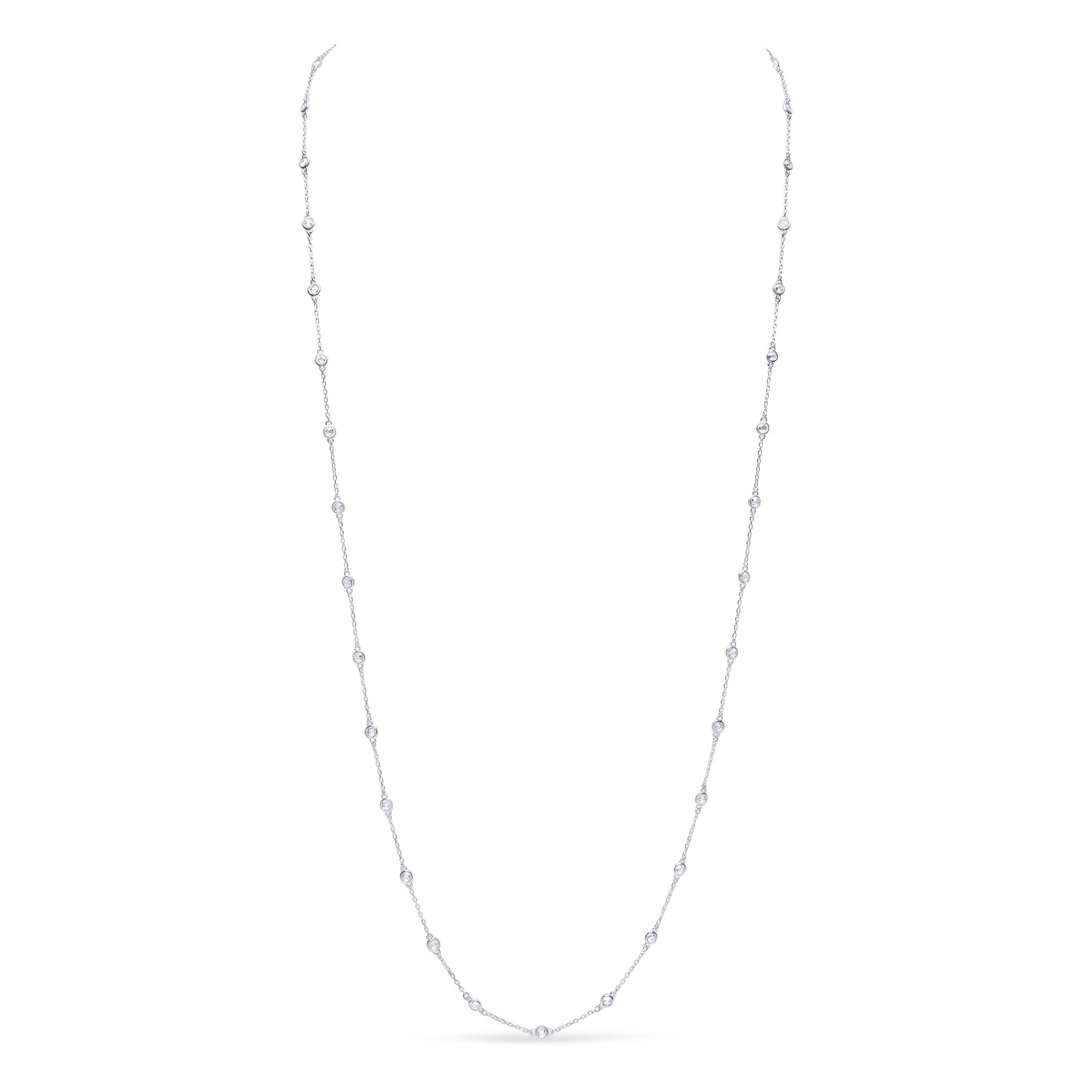 The Antoinette necklace features 3.5mm rub-over all-white faceted cubic zirconia stones on a rhodium-plated sterling silver chain with a lobster clasp.
