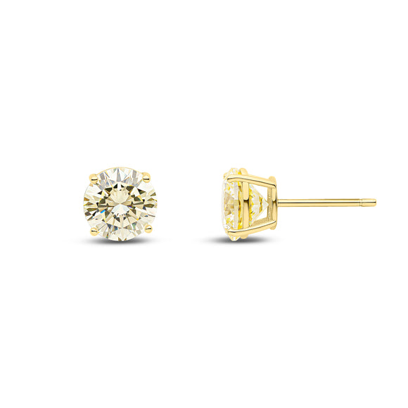 The Eva stud earrings feature an 8mm round pale yellow cubic zirconia stone set in gold-plated sterling silver. These earrings have a post and butterfly fitting.