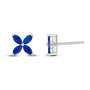 The Flo earrings feature four marquise-cut sapphire cubic zirconia stones set in rhodium-plated sterling silver with a post and butterfly fitting.