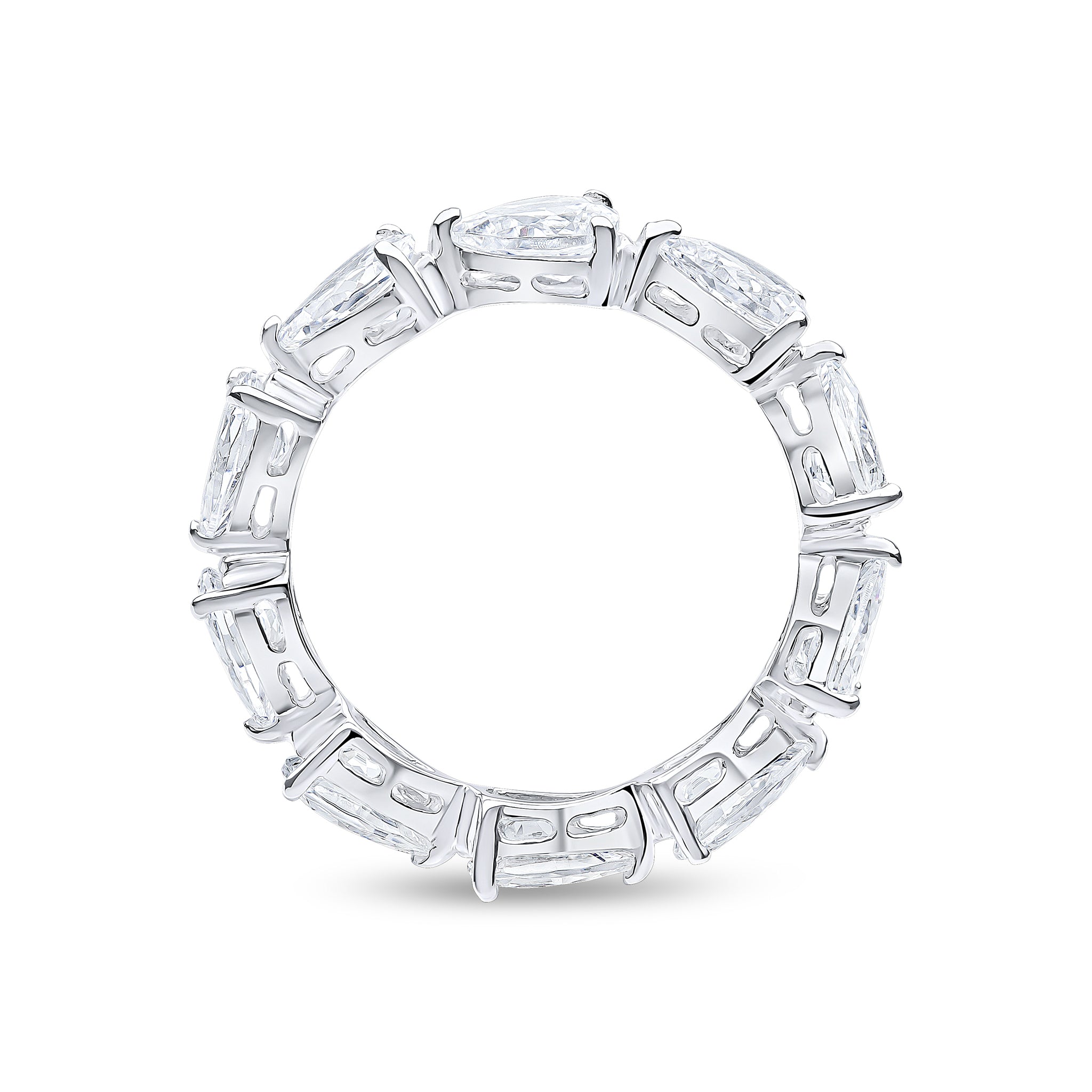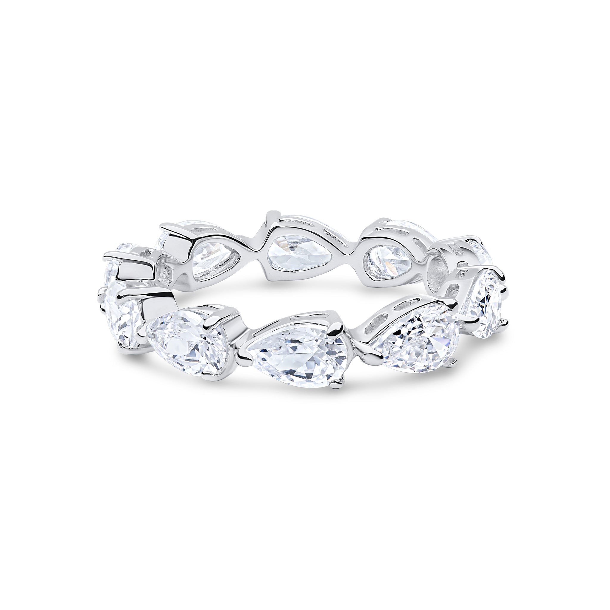The Geneva full-eternity ring features claw-set 6x4mm all-white pear-shaped cubic zirconia stones. This ring is set in rhodium-plated sterling silver.