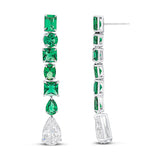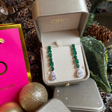 The Harper earrings feature a stem of multi-cut emerald cubic zirconia stones with a 10x8mm white pear drop. These earrings are set on rhodium-plated sterling silver with a post and butterfly fitting.