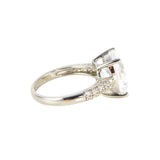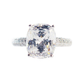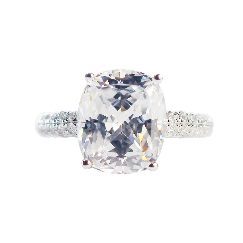 The Heidi ring features a 13x11 white oval-cushion cubic zirconia cushion centre stone with pavé stones on the shoulders, set in rhodium-plated sterling silver.