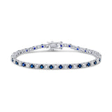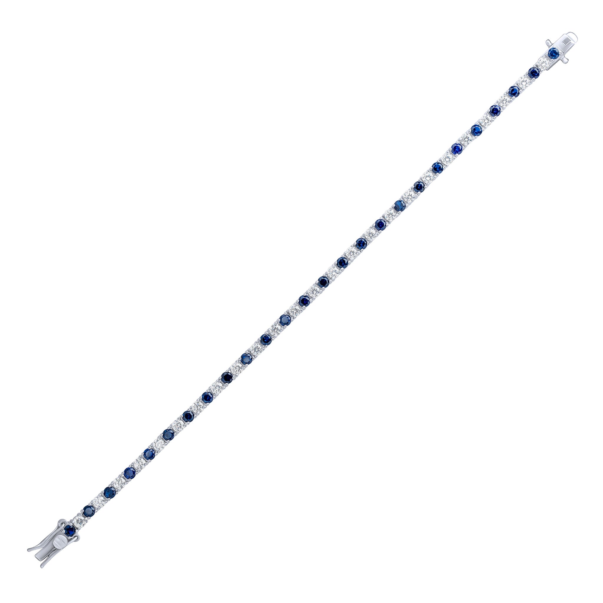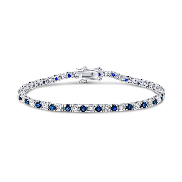 The Martina tennis bracelet features alternating 3mm round sapphire and white cubic zirconia stones, set in rhodium-plated sterling silver.