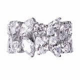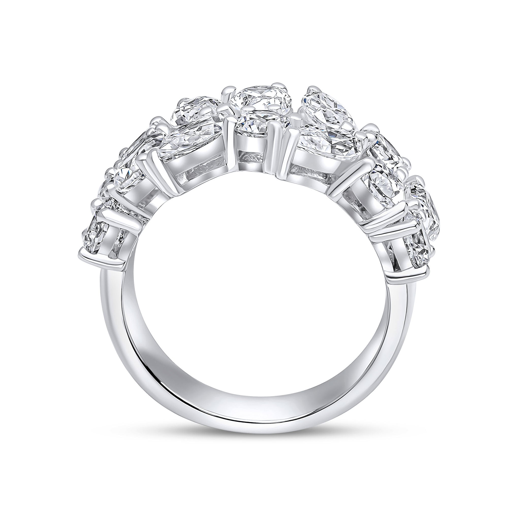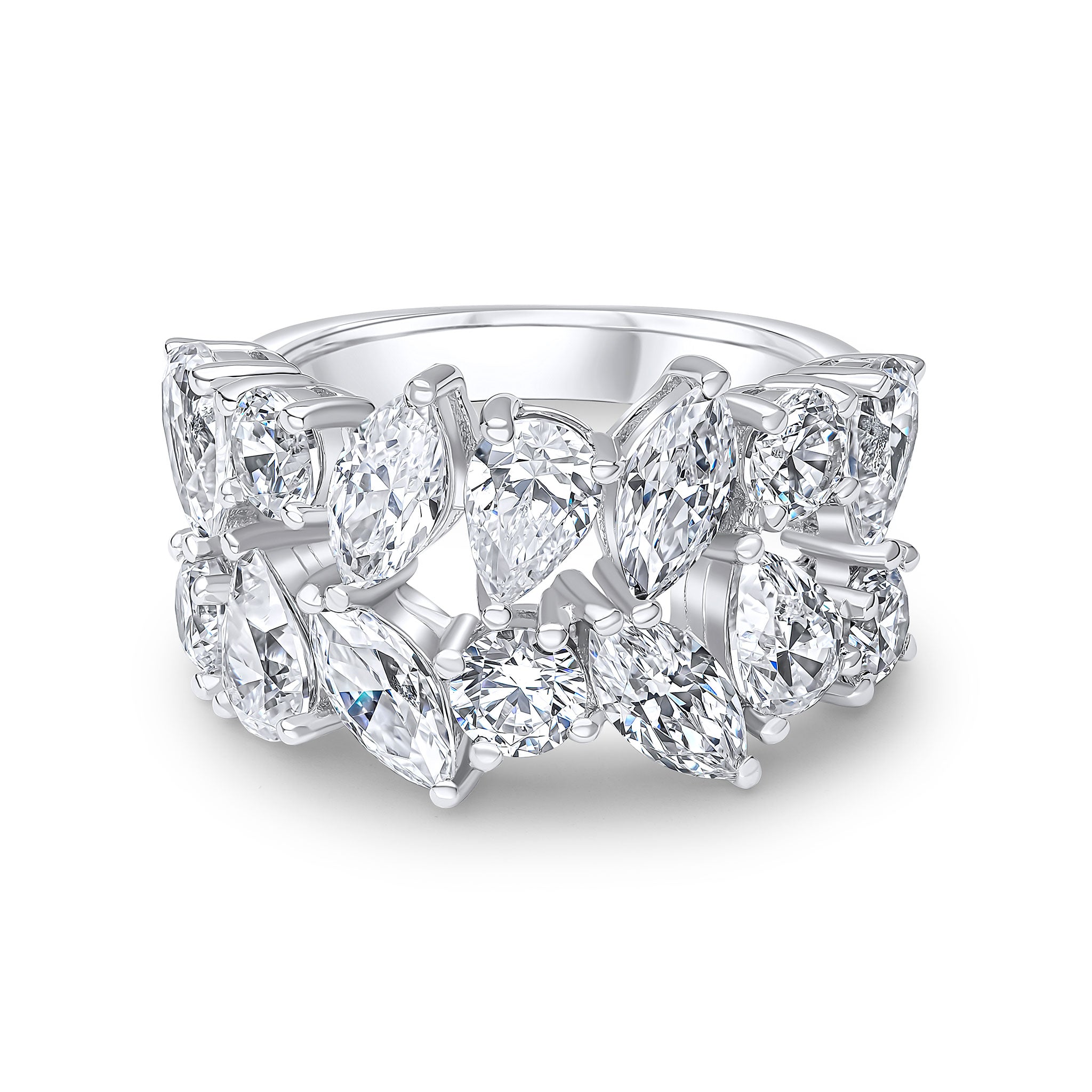The Mayfair half-eternity ring features all-white marquise, round and pear cubic zirconia stones set in rhodium-plated sterling silver.