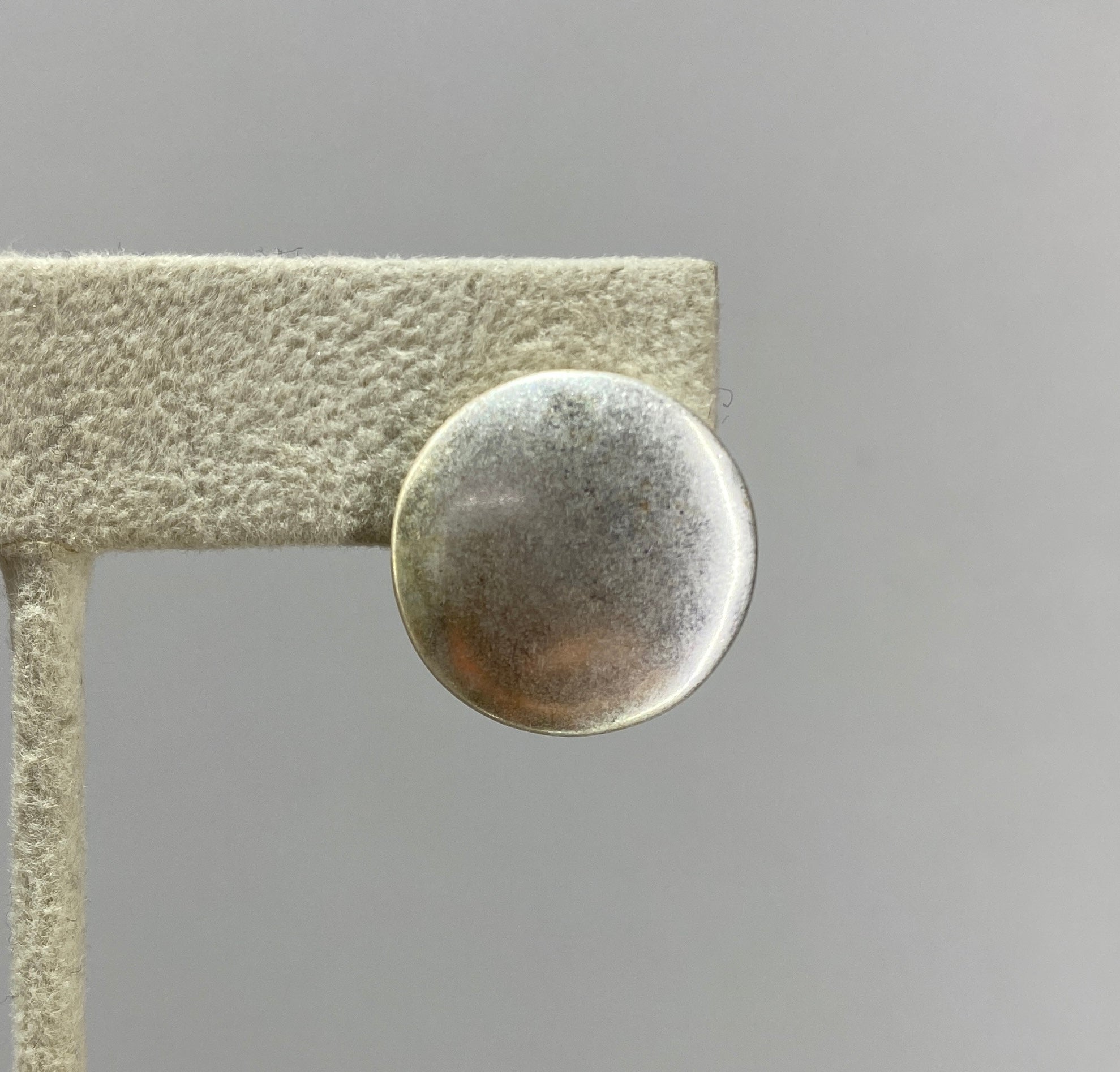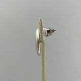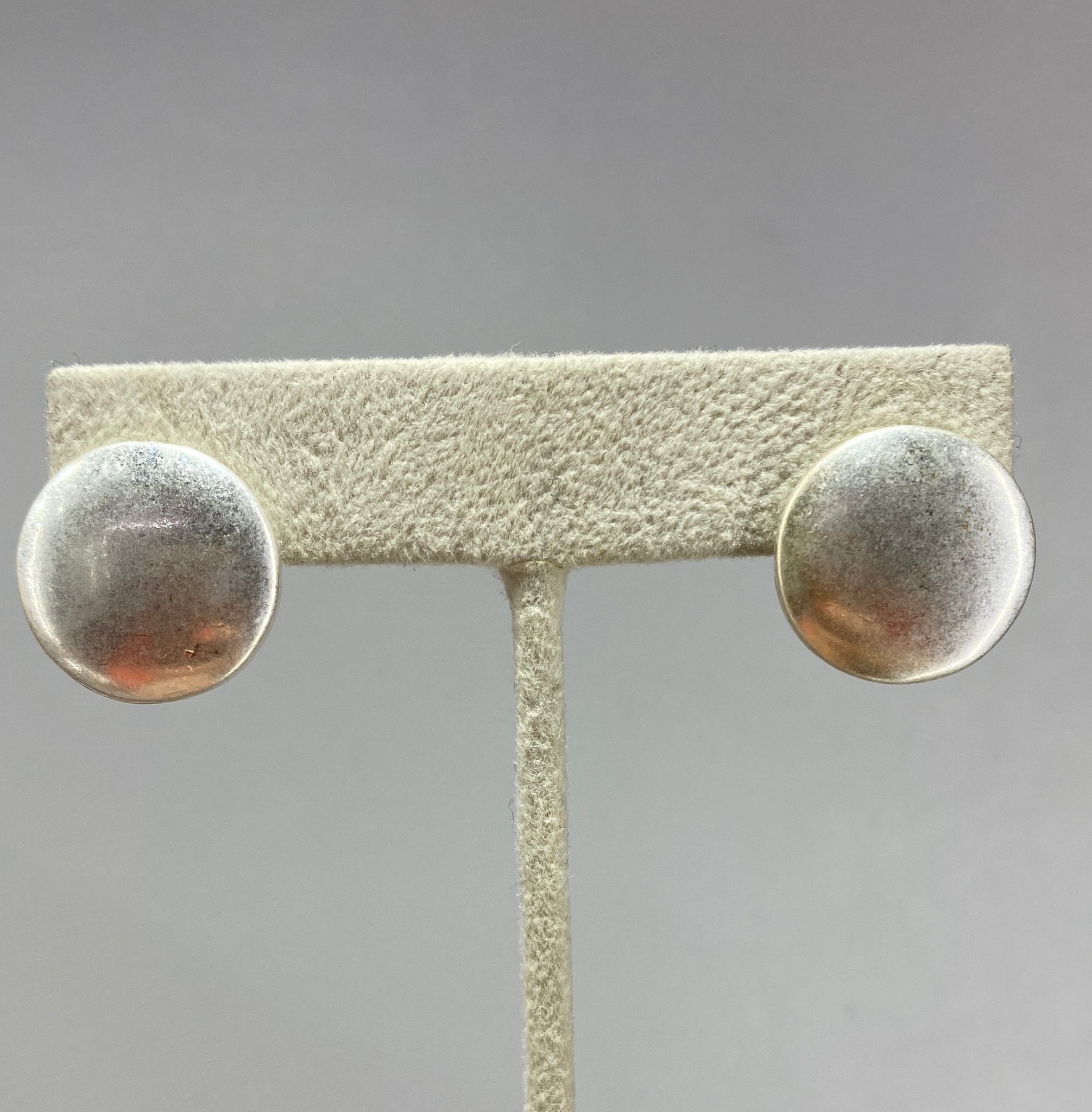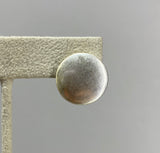 The Orla earrings feature rustic-finish rhodium plated base metal buttons and measure approximately 17mm in diameter.